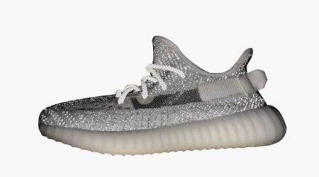 The Yeezys Boost 350 v2 “Static Reflective” is a more limited edition of the colorway released in winter 2018. At first, this version appears identical to the standard “Static” colorway by Kanye West and adidas, featuring an intricate white and grey pattern across the upper with transparent thread for the side stripes. But hit it…