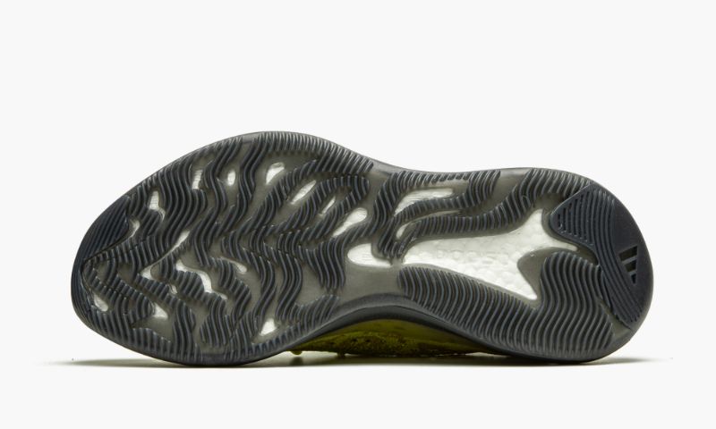 unique palette of multiple yellow shades, both dark and light, on the upper. Adidas complements the look with a strip of neon green monofilament on the lateral side. The cream laces match the hue of Primeknit used around the sock-like